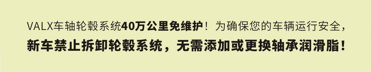 ● 载荷10~13吨/轴,轮毂系统2年或40万公里免维护。