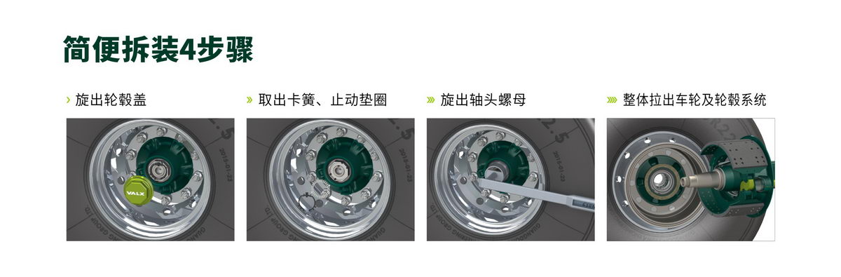 ● VALX轮毂系统拆装便捷,简单4个步骤就能实现刹车片的更换。