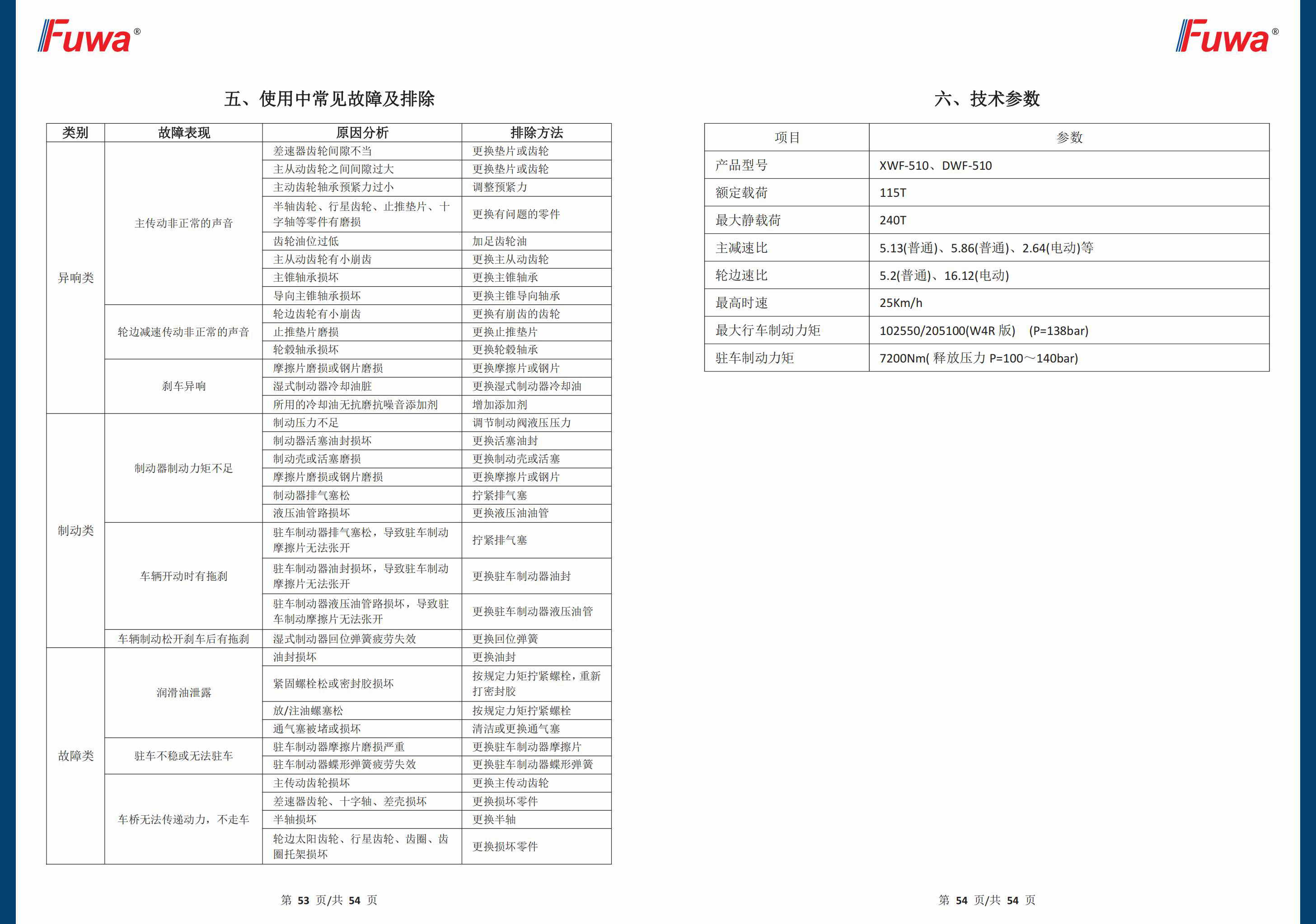(正面吊)XWF-510 115吨湿式驱动桥总成产品维护保养手册